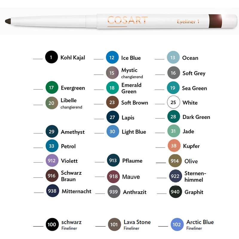 Dank der wundervoll cremigen Textur, gleiten die Cosart Eyeliner sanft über die Lider.