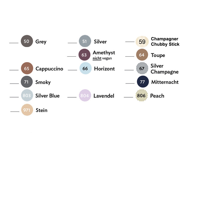 Vegan: Alle Farben sind vegan – mit Ausnahme der Nuancen 60 Rosewood und 63 Amethyst.