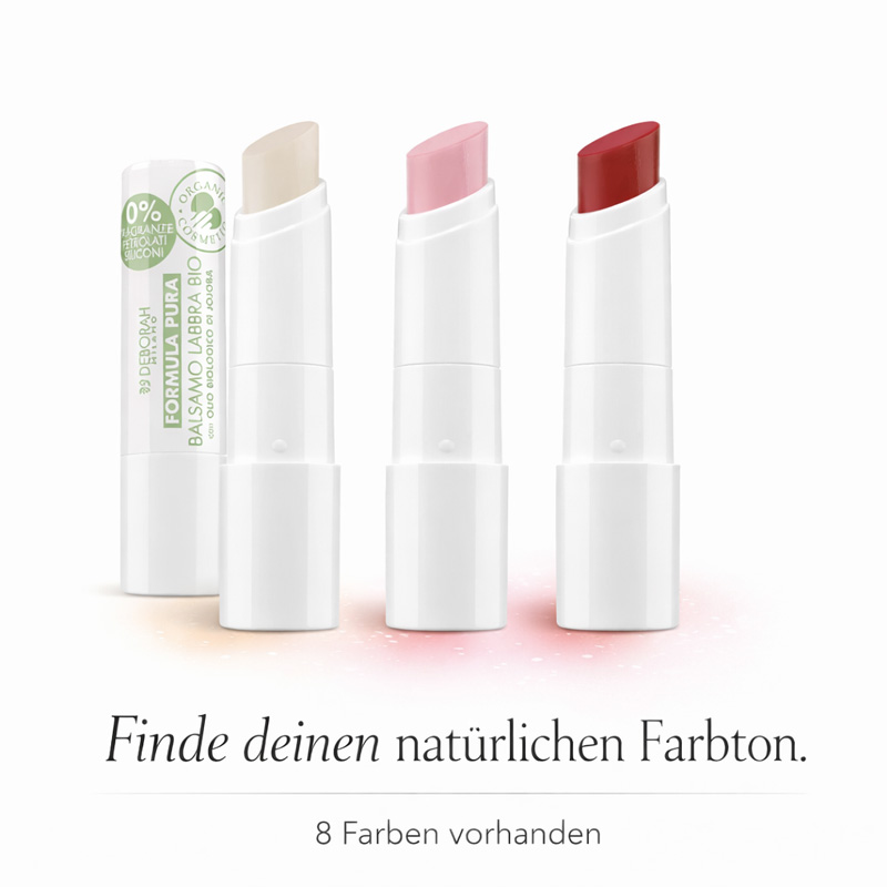 Der Deborah Lipbalm enthält zu 100% natürliche Inhaltsstoffe, davon 20 % aus biologischem Anbau.