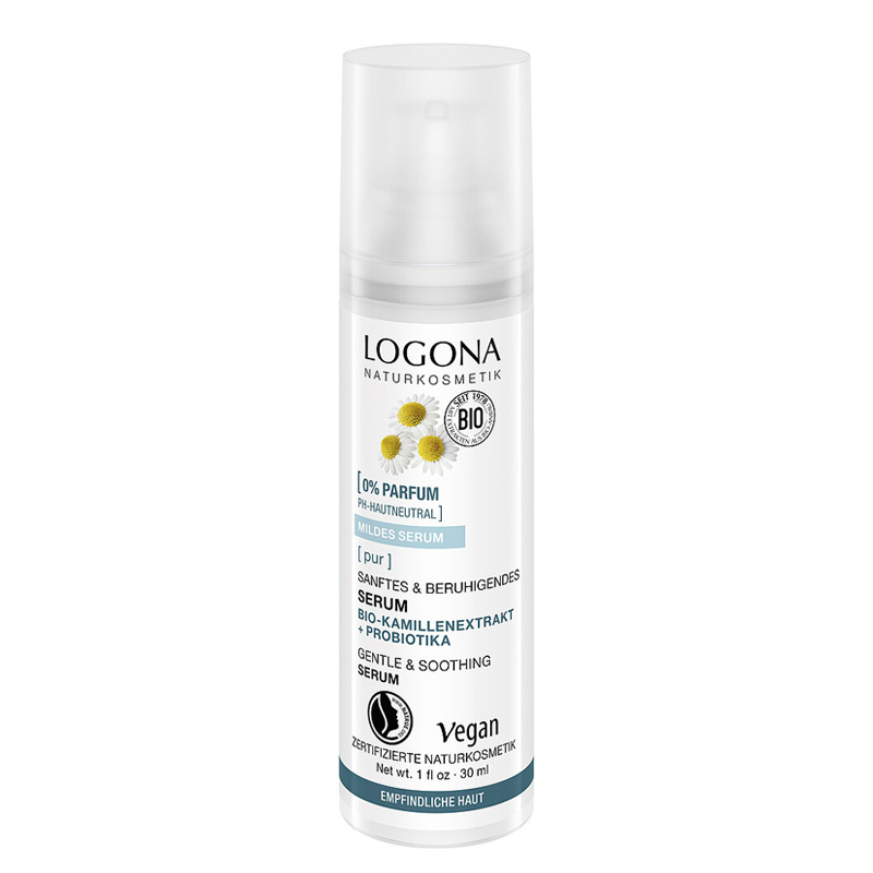 Das LOGONA PUR Serum Kamille ist eine milde Pflegeformel natürlichen Ursprungs, die empfindliche Haut mit Feuchtigkeit versorgt und ihre natürliche Balance unterstützt.